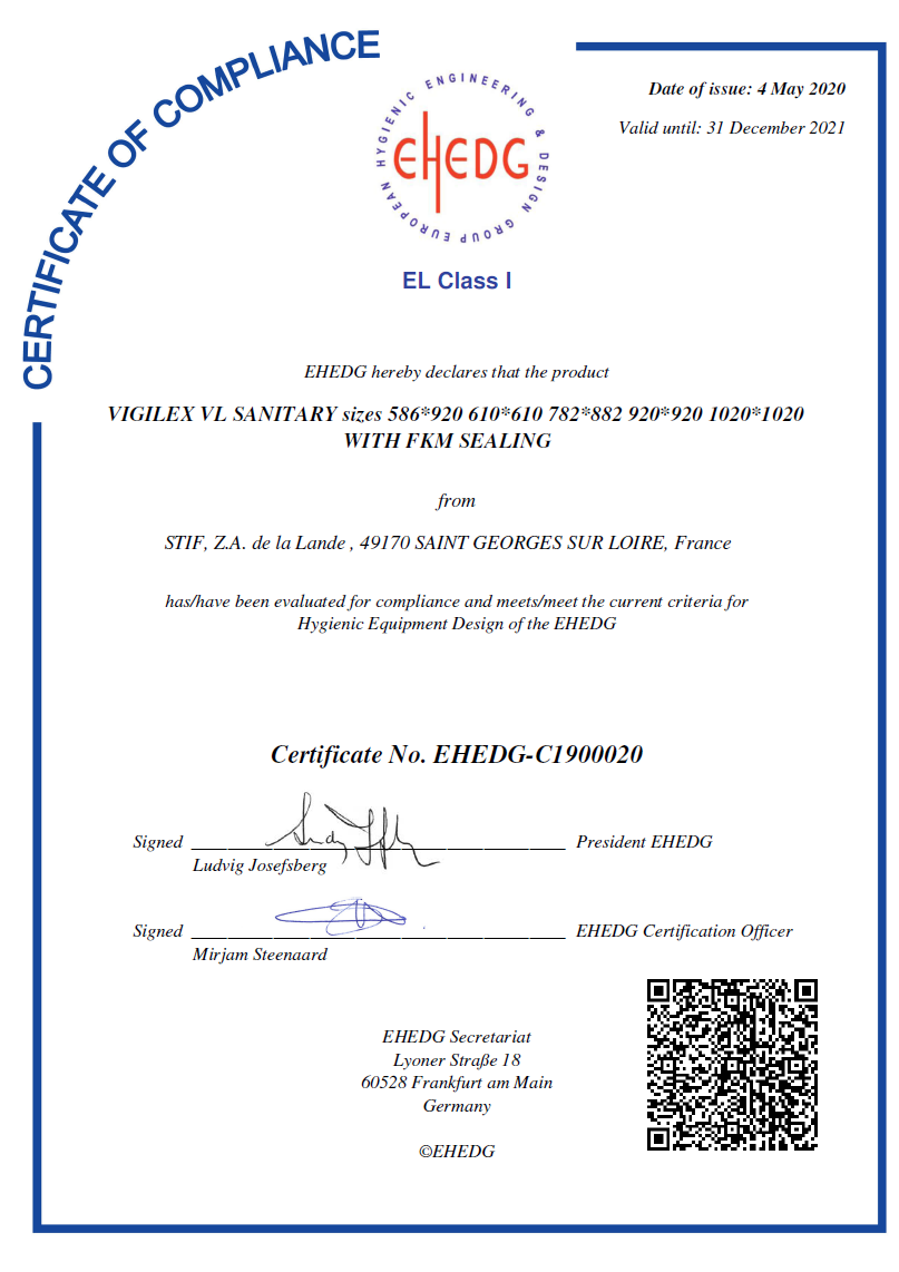 - Certificato EHEDG per VIGILEX VL -SANITARY (15857 download )